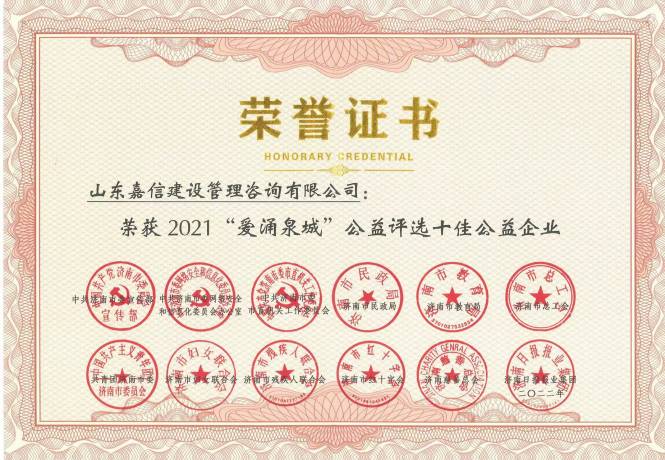 山东嘉信荣获2021年度“爱涌泉城”公益评选十佳公益企业