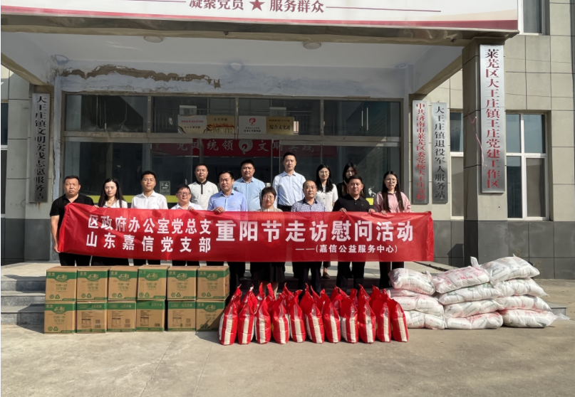 “人生最美夕阳红,世间最美老年花”,为让老年人过幸福祥和的节日,在国庆暨重阳节到来之际,9月30日,山东嘉信党支部(嘉信公益服务中心)书记范士强携手区政府办公室党总支深入到大王庄镇,给35户70岁以上老人送去节日的慰问与祝福。